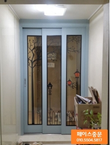 자투리공간없이 맟춤제작으로 마감이 깔끔한 시공으로 마무리되는 중문설치
